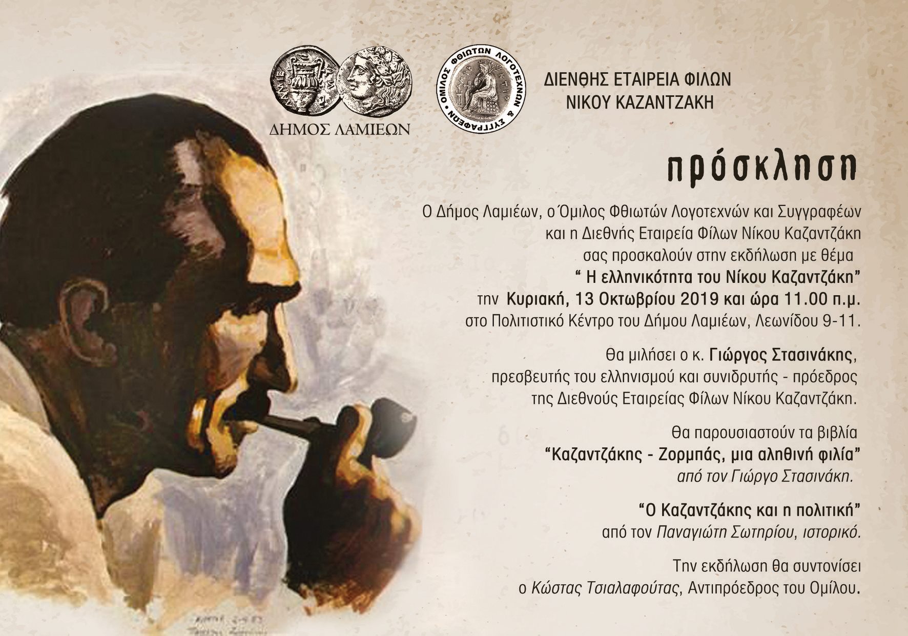 Εκδήλωση με θέμα η ελληνικότητα του Ν. Καζαντζάκη, Λαμία